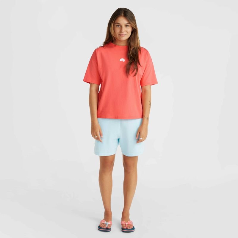 O’Neill Wow T-Shirt W Properties: Women’s short-sleeved T-shirt Loose fit 160 g/m² medium weight jersey hand-printed water-based pigment print on front and back Ribbed, semi-circular collar Drooping shoulders Short sleeves O’Neill Blue Program – Sustainable Raw Material Sourcing in Harmony with the Environment Material: 100% cotton