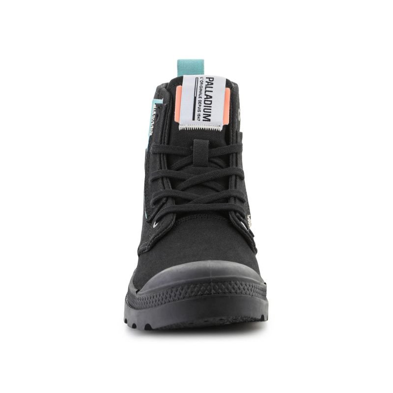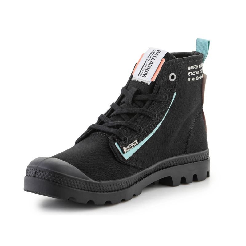 Palladium Pampa Underlayer W 99183-008-M Black shoes Properties: Palladium Pampa Underlayer 99183-008-M in black is a model created for outdoor enthusiasts. Made of high-quality materials, these shoes are weather-resistant and provide excellent grip thanks to the rubber sole. Their durable construction and unique design make them an ideal choice for both long hikes and everyday use. These shoes combine functionality and modern look. Color: black