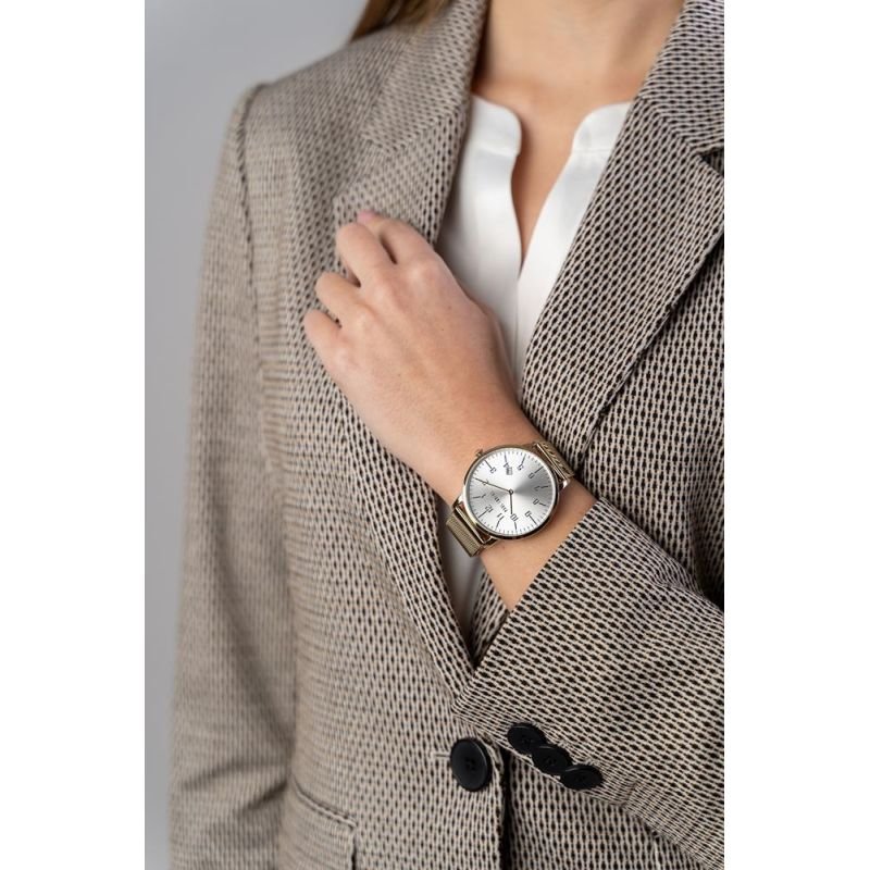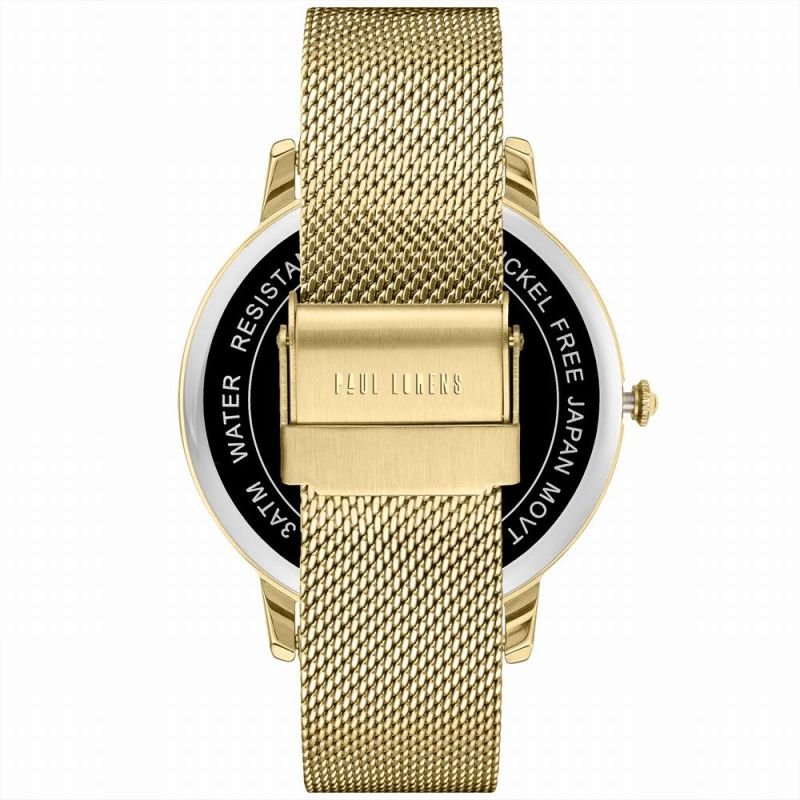 Paul Lorens PL11503B-3D1 Women’s Watch Product description: Brand: Paul Lorens Mechanism: Quartz Dial: Analog with date display Case: High-quality steel – covered with a special PLATING coating with increased abrasion resistance Glass: Mineral with increased resistance to scratches and accidental impacts Bracelet: Stainless steel, Mesh type – adjustable Water resistance: 3 BAR Anti-allergic: Yes – nickel-free – perfect for allergy sufferers Originality: The watch has engraved manufacturer information on the back, proving its originality. Dimensions in mm: Envelope: 42 Shield: 38 Thickness: 7.8 Bracelet: 20 Circumference: max.240 Color: Case: gold Dial: silver Indexes: black Hands: gold Bracelet: gold