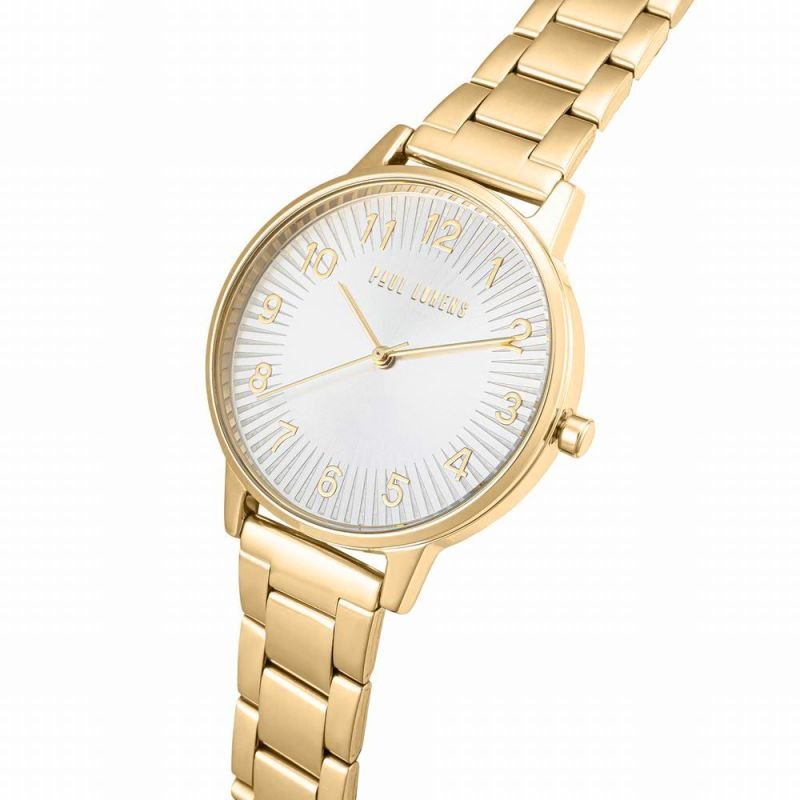 Paul Lorens PL11715B3-3D1 Women’s Watch Product description: Brand: Paul Lorens Mechanism: Quartz Dial: Analog Case: High-quality steel – covered with a special PLATING coating with increased abrasion resistance Glass: Mineral with increased resistance to scratches and accidental impacts Bracelet: Stainless steel – adjustable Water resistance: 3 BAR Anti-allergic: Yes – nickel-free – perfect for allergy sufferers Originality: The watch has engraved manufacturer information on the back, proving its originality. Dimensions in mm: Envelope: 37 Shield: 33 Thickness: 9.4 Bracelet: 16 Circumference: max 190 Color: Case: gold Dial: silver Indexes: gold Hands: gold Second hand: gold Bracelet: gold