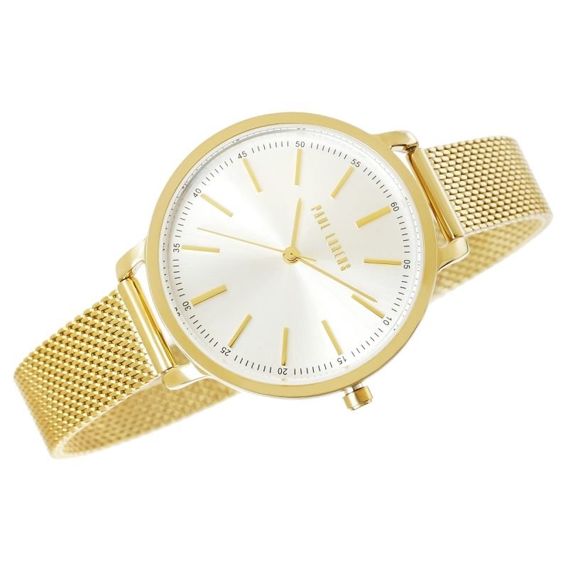 Paul Lorens PL11760B-3D1 Women’s Watch Product description: Brand: Paul Lorens Mechanism: Quartz Dial: Analog Case: High-quality steel – covered with a special PLATING coating with increased abrasion resistance Glass: Mineral with increased resistance to scratches and accidental impacts Bracelet: Stainless steel, Mesh type – adjustable Water resistance: 3 BAR Anti-allergic: Yes – nickel-free – perfect for allergy sufferers Originality: The watch has engraved manufacturer information on the back, proving its originality. Dimensions in mm: Envelope: 34 Shield: 30 Thickness: 8.4 Bracelet: 12 Circumference: max.220 Color: Case: gold Dial: silver Indexes: gold Hands: gold Second hand: gold Bracelet: gold