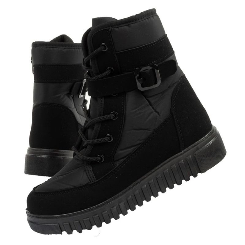 Progres W PROGJ-24-148 winter boots Properties: Women’s winter boots by Progres. The high upper is made of the highest quality textile materials, which should be impregnated before use to provide the shoes with additional protection against moisture. The classic lacing system ensures a perfect fit to the user’s foot. The zipper closure makes it easy to put on and take off the shoes. Shoes lined with thick black sheepskin. Thick, fully cushioned outsole for frost protection. The perfect footwear for any winter outfit Color: black