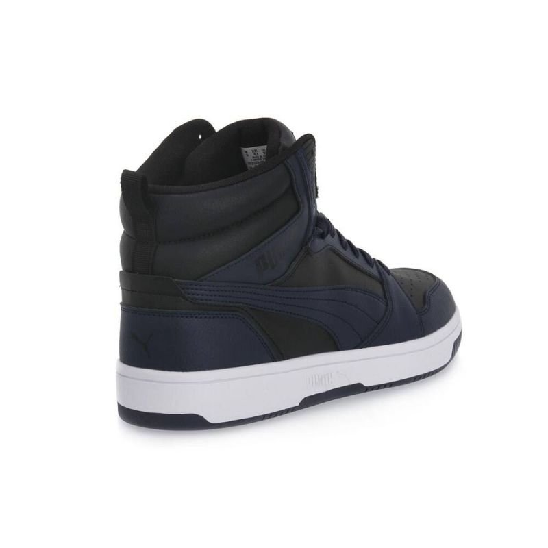 Puma Rebound v6 M shoes Puma sneakers are a comfortable option for every man Properties: Men’s sneaker model Eye-catching shoes from Puma. high men’s sports shoes classic and minimalist design inspired by basketball style they will fit perfectly into lifestyle outfits they are perfect for everyday use or light training upper made of high-quality eco-leather rubber outsole rubber midsole provides cushioning soft and comfortable SoftFoam+ insert a loop on the heel makes it easier to put on classic Formstrip stripes on the sides and in the middle Puma Cat logo on the heel lace-up fastening In addition, the soft and comfortable SoftFoam+ insole provides extraordinary comfort and additional cushioning. The shoes have practical elements, such as a loop on the heel for easier putting on. the upper is made from at least 20% recycled materials Material: eco-leather Color: navy blue, white sole
