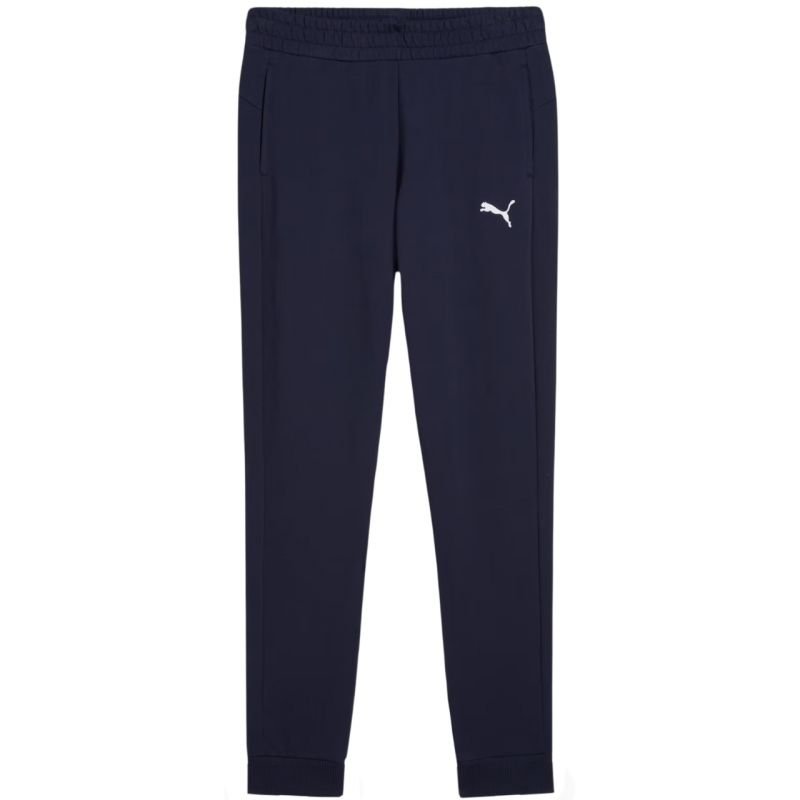 Puma Team Goal Casuals Women’s Pants Navy Blue 658604 06 Properties: Puma women’s trousers are perfect for everyday use. Soft-touch fabric. Small logo on one of the legs. Elastic waistband with internal drawstring for adjustment. Fitted cut. Tapered legs finished with cuffs. Open side pockets. Main material: 100% cotton. Ribs: 98% cotton, 3% elastane.