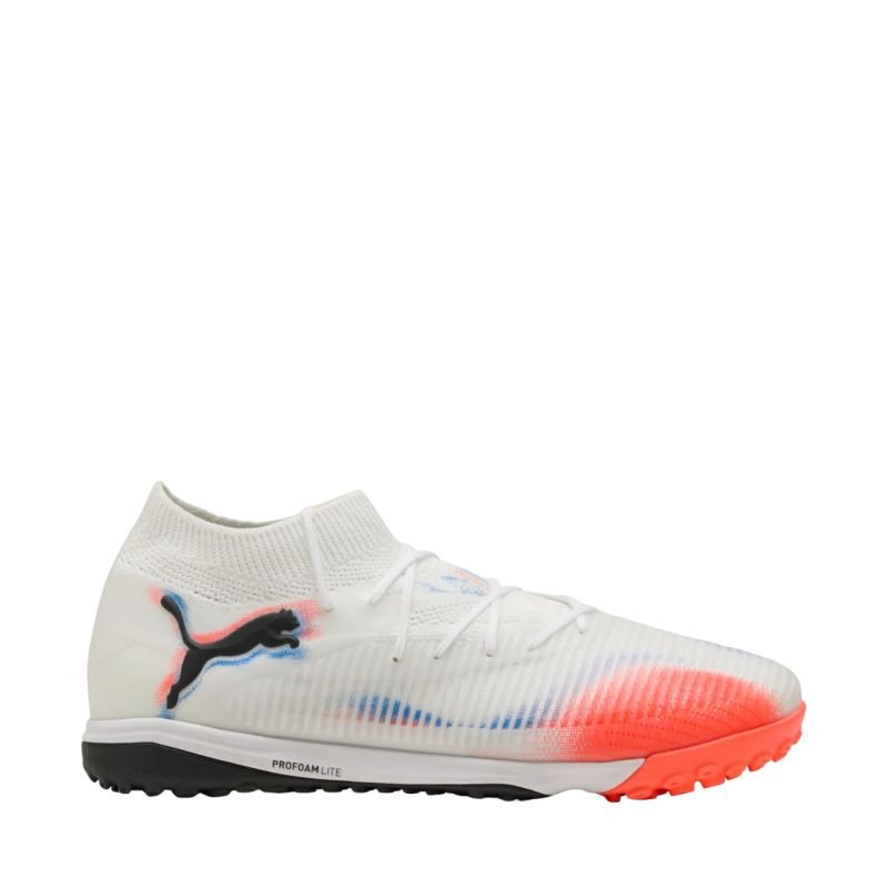 Puma Ultra 6 Pro Cage TT 108592 01 football boots for men from Puma showcase your unique style of play. These semi-professional boots with an advanced sole are a practical solution for club matches played on artificial turf surfaces. The updated design is consistent with the Untamed Pack collection. Specifications: · Highly stretchy upper and flexible knitted collar provide excellent fit and support · Raised mesh lines and GripControl technology enhance traction and ball control · PWRTAPE reinforcement in the midfoot ensures a secure fit and stability · Flexgility rubber outsole provides 360-degree agility · Upper made from at least 20% recycled material