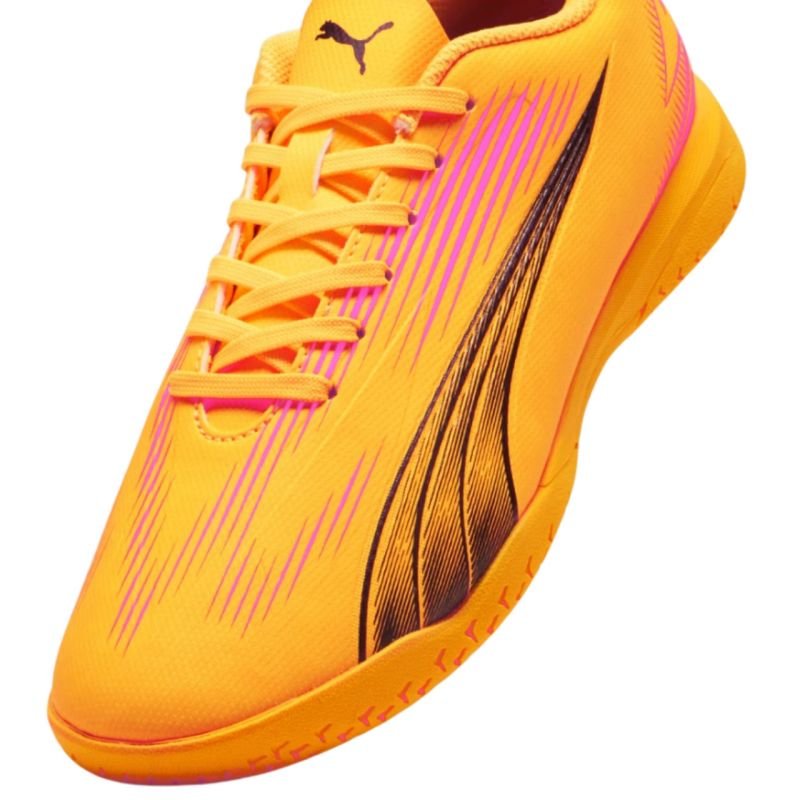 Puma Ultra Play IT Jr 107780 football boots Properties: Puma Ultra Play IT Kids’ Soccer Shoes Puma Ultra indoor football shoes for kids offer a comfortable introduction to the era of speed in football. Recreational shoes from the premiere Forever Faster collection. Synthetic, lightweight upper with embossed elements and print. Classic lacing. Rubber sole with multi-directional tread. Color: orange