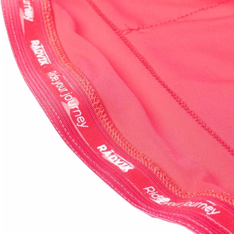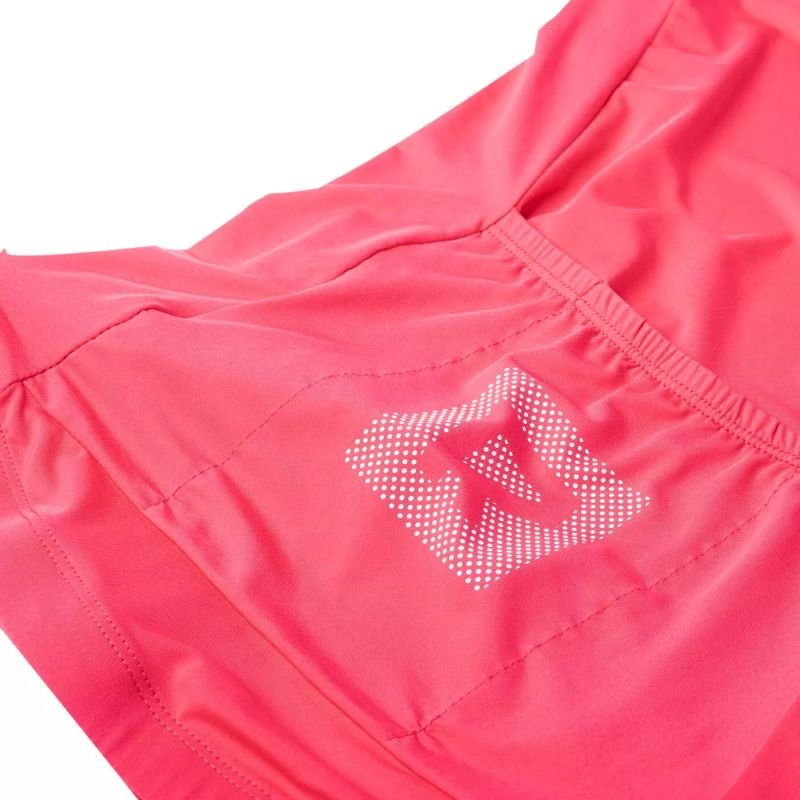 Radvik Alpha Jgr T-shirt Properties: The ALPHA JRG T-shirt by Radvik is made of durable, stretchy polyester that ensures comfort and unrestricted movement. It wicks moisture away perfectly and dries quickly. It’s very practical and fits snugly. Additionally, the extended back protects your back from the cold. A silicone surface at the bottom of the shirt prevents it from shifting. Reflective elements ensure safety. A back pocket holds all your essentials. Breathable, Quick-drying, Reflective elements, Back pocket, Cuffs with added silicone, Laser-cut sleeves Material: 86% polyester 14% elastane Color: pink