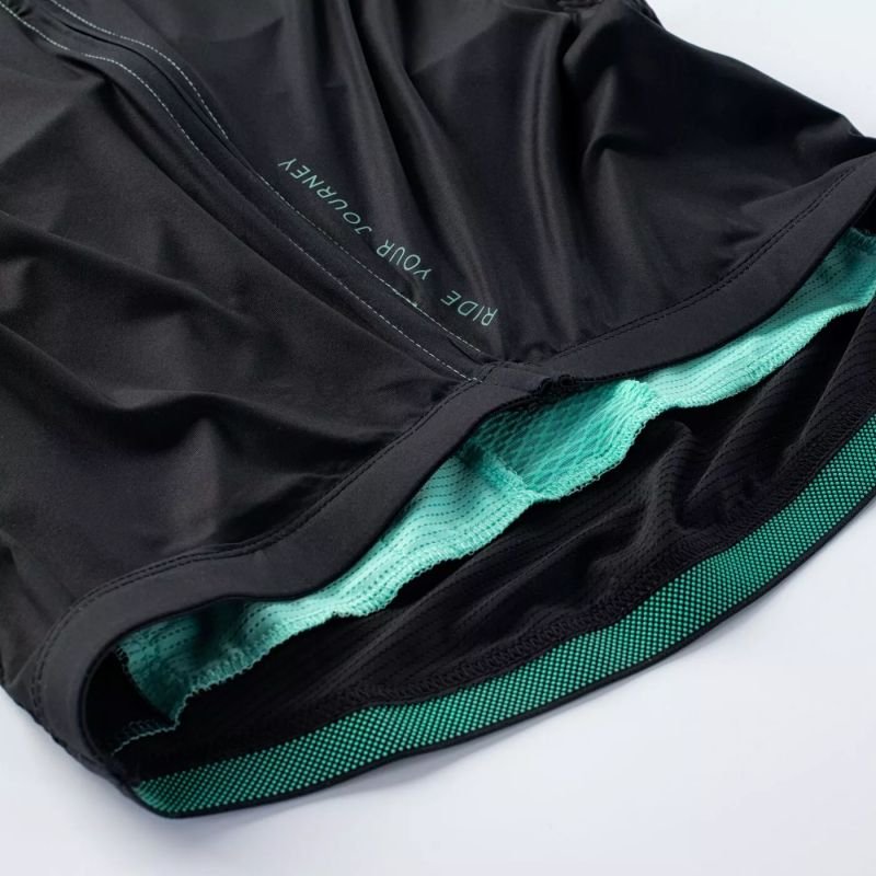 Properties: Radvik men’s cycling jersey. Fitted cut. Fastened with a zipper. Breathable, quick-drying fabric. Back pocket. Reflective elements. Material: polyester, elastane Color: black and green