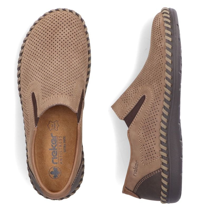 Rieker B2460-25 mens leather slip-on shoes, beige
