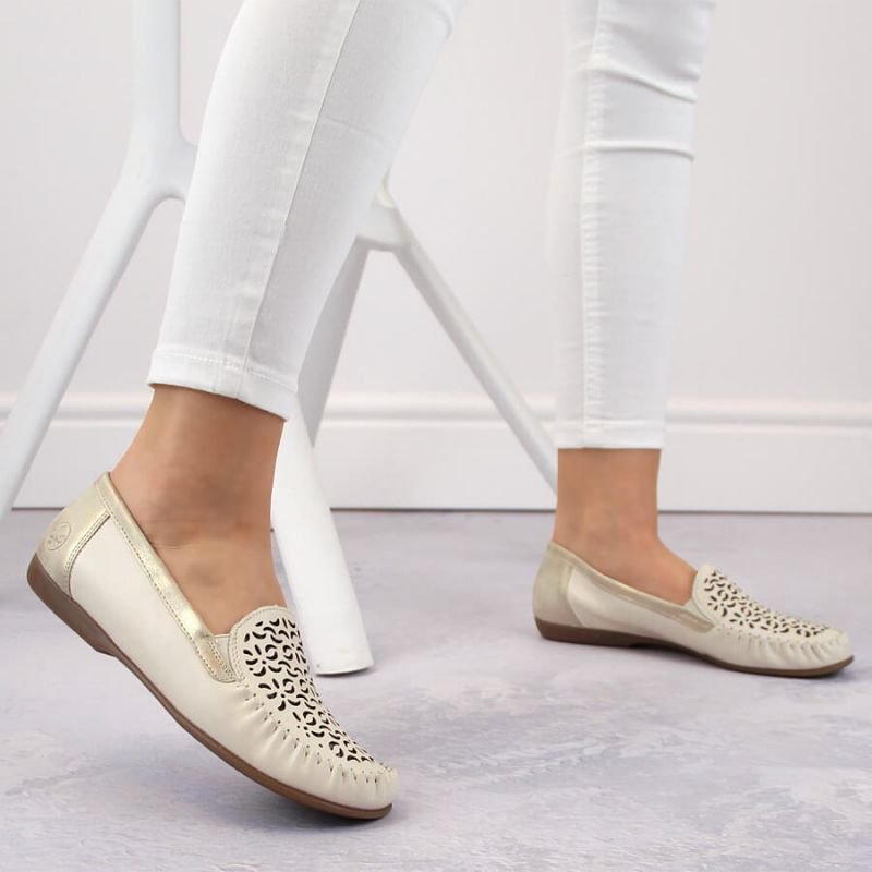 Rieker W RKR658 comfortable leather openwork shoes, beige Properties: Rieker brand shoes perfect for everyday use for women low model slip-on clasp upper made of synthetic leather lining made of natural and synthetic leather rubber sole openwork pattern unique colors Color: beige
