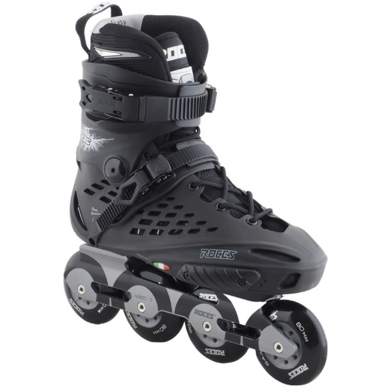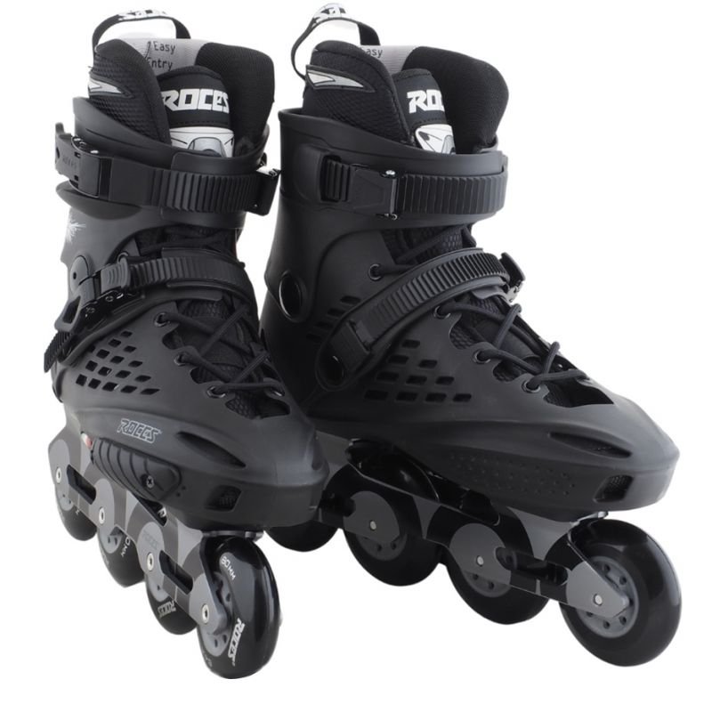Roces X35 TIF roller skates black and silver 400849 01 Properties: Roces roller skates are perfect for freestyle skating. The X35 TIF model is chosen by intermediate and advanced users. The hard shell with a 3-stage Hell Lock buckle closure is responsible for foot stabilization and optimal fit. The use of Easy Entry System technology will make changing easier. Soft lining. Additional holes combined with the Cool Breathe system support foot ventilation. 4-wheel drive system mounted on agile ABEC-7 bearings. Technical data: ·Easy Entry System: makes it easy to put on and take off the roller Cool Breathe: mesh ensures proper ventilation Hell Lock: a buckle that stiffens the roll and protects the ankle joint ·coating: glass fiber reinforced HQ Polypropylene Progressive Anatomical Padding – a gel pad placed in the shoe ensures a natural fit maximum wheelbase: 243 mm Bearings: ABEC-7 Frame: Composite ·sleeves: aluminum wheels: PU (commonly called rubber), size – 80mm/84A ·the model does not include a skate skid ·Note: We recommend choosing one size larger