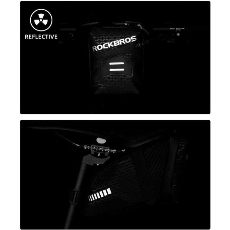 ROCKBROS SADDLE BAG 1.5L, BLACK C29-BK The Rockbros saddlebag is a saddlebag designed to easily transport gear without the need for a rear rack. Made of durable and resistant materials, it’s lightweight, waterproof, and easy to install. CHARACTERISTICS: capacity: approx. 1.5l material: Polyester Weight: 135 g Dimensions: approx. 12.8 x 16.5 x 9.6cm Characteristic: durable, waterproof material strong Velcro fastening reflective elements spacious main pocket mesh pocket for small items at the bottom of the bag small zippered pocket at the back of the bag