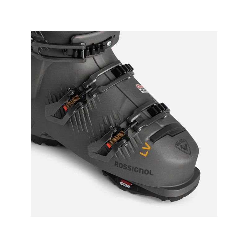 Step into the revolution – easy to put on and high performance with the new Step In design. Designed for skiers seeking a precise fit and high performance, the Rossignol Vizion 4B Elite 130 LV ski boots feature an innovative shell construction with a wide rear opening. Step-In technology provides unrivaled ease of entry and exit while offering full support during descents. Spine Link maintains stability, and double cuff buckles ensure comfort. The boots feature Thinsulate™ Stretch insulation and GripWalk® soles for enhanced grip. Just slip on, fasten and ski. Precise fit with a narrow shell The 98mm toe box provides a precise fit, optimized for comfort, precision and power. Easy to put on, full performance when descending Step In Technology is a revolutionary new boot design that delivers the highest level of ski performance with a first-of-its-kind, seamless entry and exit. Excellent performance Our Spine Link mechanism is the magic that makes the Vizion boots the easiest to put on alpine boots on the market. When locked, the mechanism holds the steel spine in a traditional ski position. When released, it allows the boots to open wide, allowing you to put them on and take them off like slippers. Full support, easy to put on The Bi-Injected Spoiler is made of a stiff PU material that provides the support and energy transfer of traditional alpine boots, while soft rubber sides create a tight fit. Increased rearward mobility allows for exceptionally easy entry and exit. Easy-open cuff A unique double buckle on the lower cuff effortlessly unlocks and releases the spoiler, allowing for smooth, easy on and off, like slipping into slippers. Better ski performance, better fit Dual Core technology ensures precise power transfer and perfect wrapping of the boot shell, resulting in a more responsive rebound, faster response and better control while skiing. Full comfort and support: Our True Form Step-In Liner offers the fit and feel of traditional custom-fit ski boots, with key features that facilitate wide access for easy entry and exit, while maintaining the support needed for aggressive skiing. Thermal insulation and support: Thinsulate™ Stretch provides thermal insulation while increasing foot support, which improves skiing performance. Optimal fit and warmth: Our seamless finger construction eliminates pressure points, ensuring a perfect fit and reducing heat loss by 20%. Grip on all terrain: GripWalk® outsoles with a rubber tread and curved toe allow for a more natural walking motion and increased traction on a variety of surfaces.