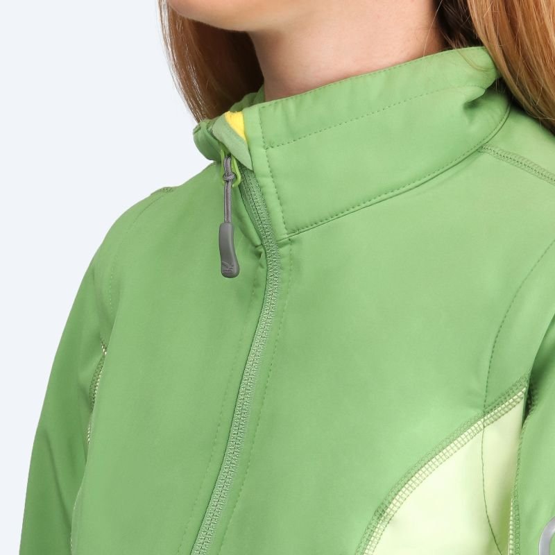 A classic women’s softshell jacket with detachable sleeves (suitable as a jacket or vest). It features a soft fleece lining for improved warmth retention. The stand-up collar is adjustable with a drawcord. Features: Weight: 500 g Color: Green/Chlorophil Material: Stormwall 2L 215 performance, DWR finish Technical, ergonomic women’s cut Extended sleeves and back Velcro-adjustable cuffs Zippered sleeve pocket Two side zippered pockets