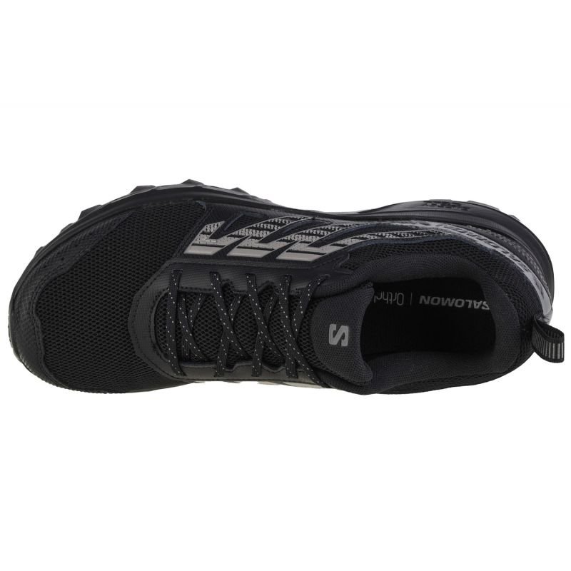 Properties: men’s Salomon shoes made for mountain hiking low, lace-up model synthetic upper textile lining thick sole manufacturer’s logo Material: synthetic, fabric Color: black