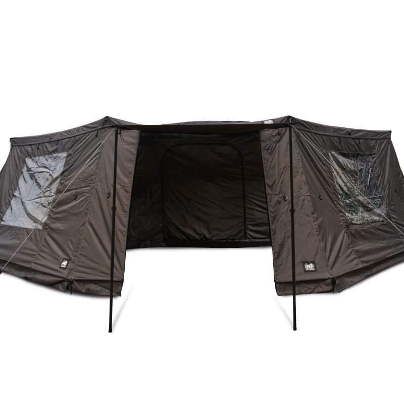 Properties: The SPEEDY L freestanding car awning is a great way to organize the space around your car. The roof extends 180° around the car, creating a large, shaded space where you can relax on hot days. Thanks to the fact that the awning has fully foldable legs, you can fully utilize the entire space. You can easily fit chairs, a camping table or a thermal refrigerator there. On a rainy morning, the solid, waterproof fabric (PU 2000 mm) will provide you with a dry surface where you can prepare breakfast or spend time relaxing, breathing fresh air. ✓ Fully enclosed room – greater privacy and security ✓ 2 windows with foil – rain protection ✓ Front entrance with canopy function – additional cover and shade ✓ 2000mm waterproof PU fabric – ready for any weather conditions ✓ Compatible with the STO80 awning – extends on one side of the vehicle