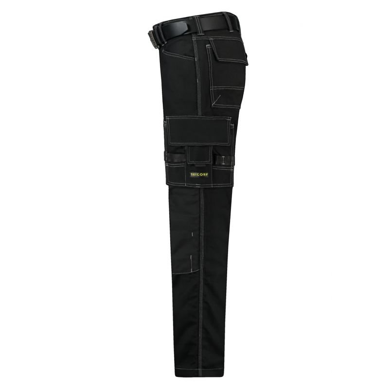 Properties: Plain weave, 65% polyester, 35% cotton; CORDURA® 100% polyamide low rise, hammer loop, multifunctional pockets, “D” pendant, fits T90 knee pads, CORDURA® in the knee area, the possibility of lengthening the legs, sizes 45, 47, 49, 51, 53, 55 are extended, the belt is not included in the set, Tricorp product code: 502009