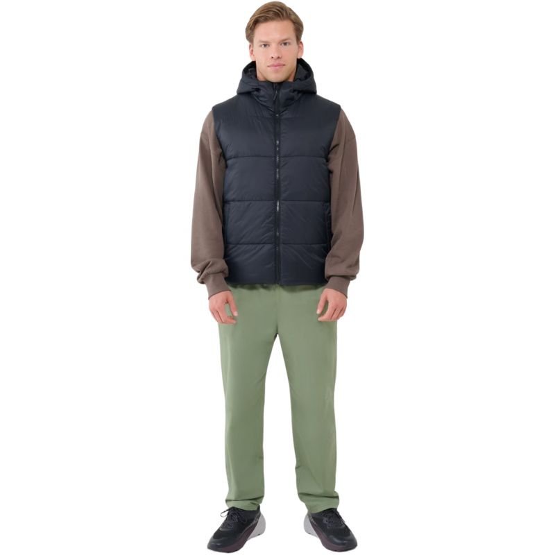 Men’s vest 4F M193 deep black 4FWSS25TVJAM193 20S Properties: The 4F men’s vest is perfect as outerwear on warmer days in the transition period. The low weight of the vest means that it does not constitute an additional burden when moving. It can act as an insulating layer, especially under a jacket with a waterproof membrane. Technical data: Outer material: 100% polyamide Lining: 100% polyester Filling: 100% polyester Regular fit comfortably fits your figure · Standard cut reaching to the hips Classic horizontal quilting · Smooth polyester lining · A vest designed for warmer days · Hydrophobic coating of the outer material limits the absorption of moisture Integrated hood with volume adjustment · High collar · 2 open side pockets · One-way main zipper with internal storm flap · Non-adjustable bottom · Synthetic down filling provides adequate insulation properties even in humid conditions