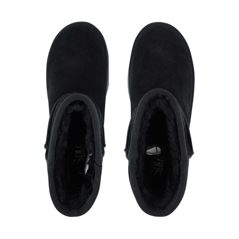 Solo Soprani Couture Hugh Platform Women’s Leather Shoes Black SSW421P05 01. These Solo Soprani women’s shoes are perfect for the fall and winter season. They feature a mid-height slip-on upper crafted from soft, genuine suede leather. Additional stitching. Plush textile lining. Soft insole. Platform foam sole. Textured tread.