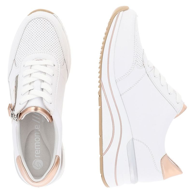 Womens leather wedge sneakers white Remonte Rieker D0T04-80