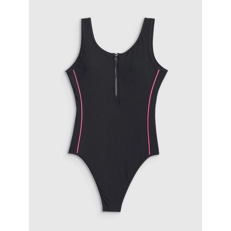 Women’s 4F One-Piece Swimsuit – Comfort and Style for the Beach and Pool This one-piece swimsuit combines classic design with modern functionality. It provides complete freedom of movement and comfort during summer holidays – perfect for both the beach and recreational swimming. Key features: One-piece cut – classic, comfortable style Material with added elastane (15%) – stretchy and adaptable to the body Quick-drying fibers – effective moisture wicking Lining – delicate and hygienic, provides coverage and comfort Round neckline with zipper – adjustable cutout depth Cups with removable pads – option to adjust support and shape Wide, non-adjustable straps – stable and comfortable Deep neckline on the back – a feminine, stylish accent Solid colors – a timeless look that suits many styles Size range: XS–XXL – perfect fit for a variety of body shapes Why is it worth it? This swimsuit combines a feminine look, comfort, and durability. The stretchy material fits perfectly without restricting movement, and thoughtful details—like a zipper at the neckline and removable inserts—allow you to customize it to your needs. Choose functional minimalism and enjoy comfort in every summer situation – with a 4F swimsuit.