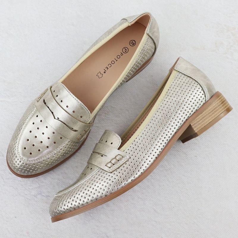 Womens openwork loafers, metallic gold, Potocki 12581