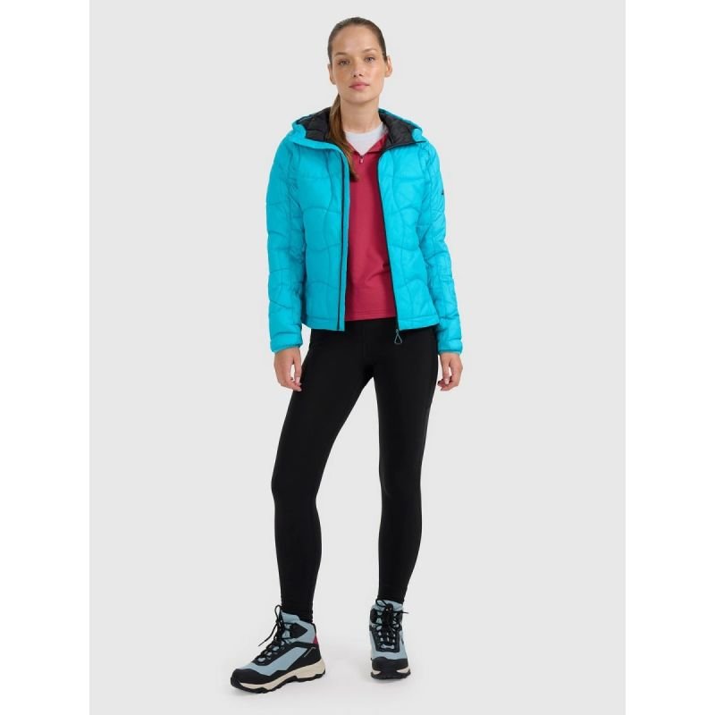 Women’s quick-drying trekking sweatshirt – warmth and full freedom of movement This women’s trekking sweatshirt is designed for activities in colder conditions. 4FWarm technology helps maintain warmth, while a quick-drying finish and waffle-like structure improve moisture management and enhance thermal comfort during exertion. An integrated hood, flatlock seams, and elastic trims ensure comfort during movement, while reflective elements ensure visibility in challenging conditions. This lightweight, functional layer is perfect for any mountain trail and everyday activities. Key features: 4FWarm technology – helps maintain warmth in cold conditions. Quick-drying finish – the material dries faster after exercise and light rain. Waffle fabric structure – improves breathability and thermal comfort. Integrated hood with trim – head protection and better fit. 1/3 length zipper – makes it easier to put on and adjust ventilation. Zippered pocket on the arm – a practical place for small items. Elastic hem – improves fit and helps retain heat. Flat seams – reduce the risk of abrasions. Reflective elements – increase visibility after dark. Regular fit – comfortable fit without restricting movement.