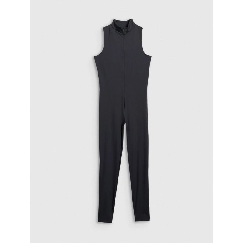 Women’s 4F sports suit – fit, comfort and 4FDry technology The 4F women’s sports jumpsuit is designed for yoga, Pilates, and everyday activities that require freedom and comfort. Its minimalist design combines a sporty character with a feminine silhouette, flattering the silhouette and supporting natural movement. The slim fit hugs the body and accentuates its shape without restricting mobility. The full-length legs provide additional coverage and comfort both during practice and everyday wear. Made of a flexible synthetic material (80% polyester, 20% elastane) , it’s durable, wear-resistant, and easy to care for. The soft, smooth fabric feels comfortable against the skin, and the added elastane enhances stretch and freedom of movement. 4FDry technology effectively wicks away moisture and accelerates the drying of the material, allowing you to stay comfortable even during more intense training sessions. The stand-up collar and practical zipper closure add a subtle, sporty touch. Welded edges minimize the risk of chafing and enhance comfort. PRODUCT FEATURES slim fit – fitted cut full leg length material: 80% polyester, 20% elastane stretchy, soft knit fabric 4FDry technology – quick drying and moisture wicking stand-up collar zipper closure welded edges without pockets