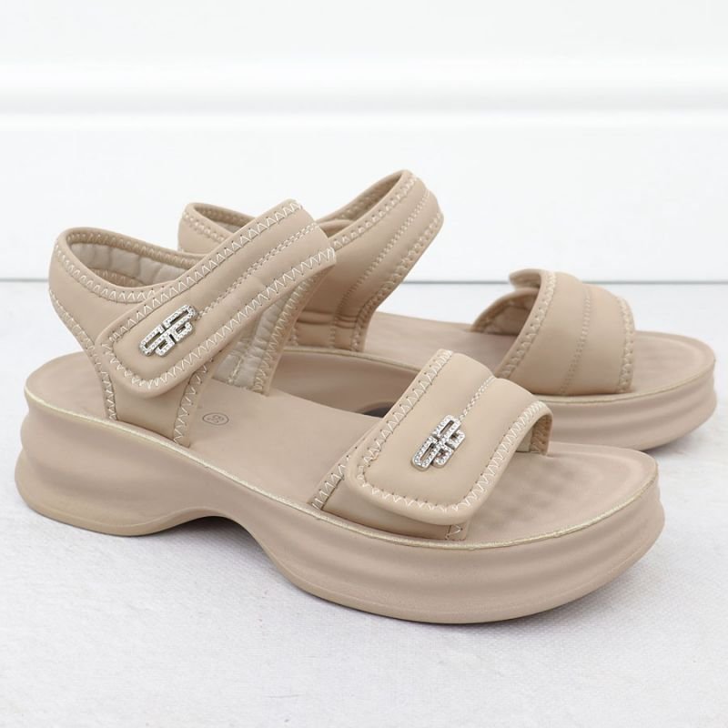 Womens sandals with thick soles and Velcro, beige Potocki 105300