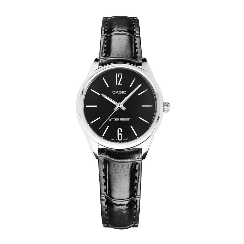 Women’s Watch CASIO LTP-V005L-1BUDF + BOX Product description: Brand: Casio Mechanism: Quartz Dial : Analog Case: Stainless steel, coated with increased abrasion resistance Glass: Mineral with increased resistance to scratches and accidental impacts Strap: Natural leather Backlight: Fluorescence Water resistance: 3 BAR Anti-allergic: Yes – nickel-free – perfect for allergy sufferers Originality: The watch has engraved manufacturer information on the back, proving its originality. Dimensions in mm: Envelope: 28 Shield: 24 Thickness: 8.0 Strap: width: 14 Circumference: 160-210 Color: Case: silver Dial: black Indexes : white Hands : silver, fluorescent Second hand : silver Strap: black, thread: black