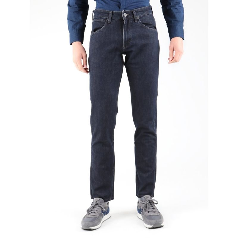 Men’s straight-leg jeans. Mid-rise. Large pockets in the front and smaller ones in the back. Leather insert with the Wrangler logo on the back pocket. Material: 82.5% cotton / 16.5% polyester / 1% elastane