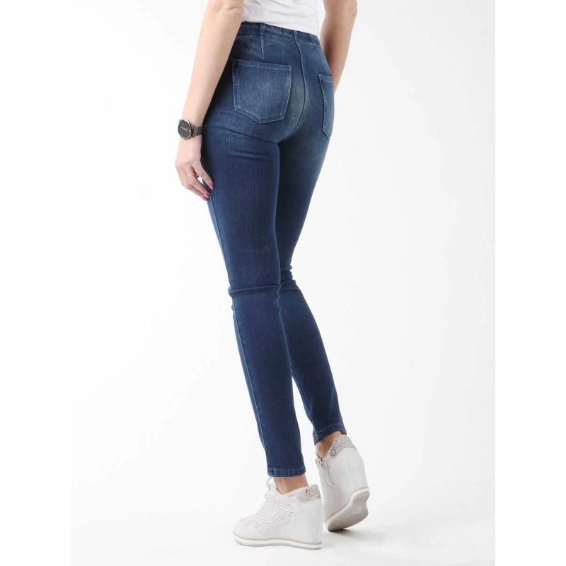 Wrangler Jeggings W W27JGM85F Properties: women’s tapered jeans pockets on the front and back leather insert with the Wrangler logo on the back of the strap the pants are tight, stretchy and slimming material: 64% cotton / 29% polyester / 7% elastane Material: cotton polyester Color: blue