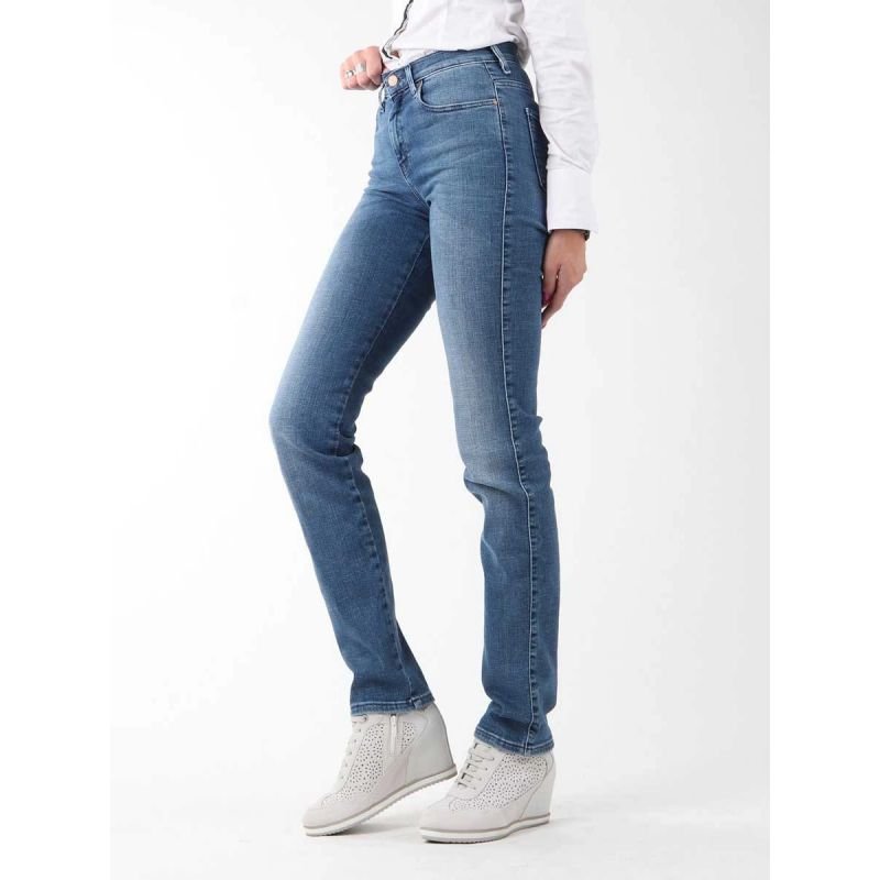 Wrangler W Jeans W27G-KY-93B Properties: women’s tapered jeans pockets on the front and back a leather insert with the Wrangler logo on the back of the strap. Material: cotton Color: blue